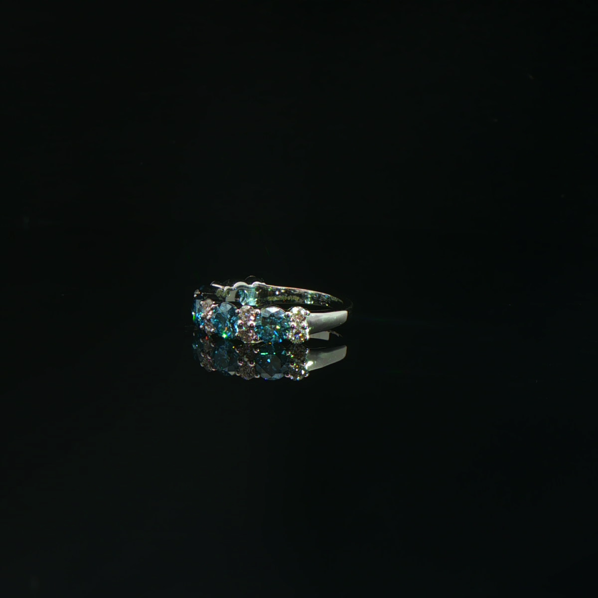 A captivating eternity band with blue and white diamonds.