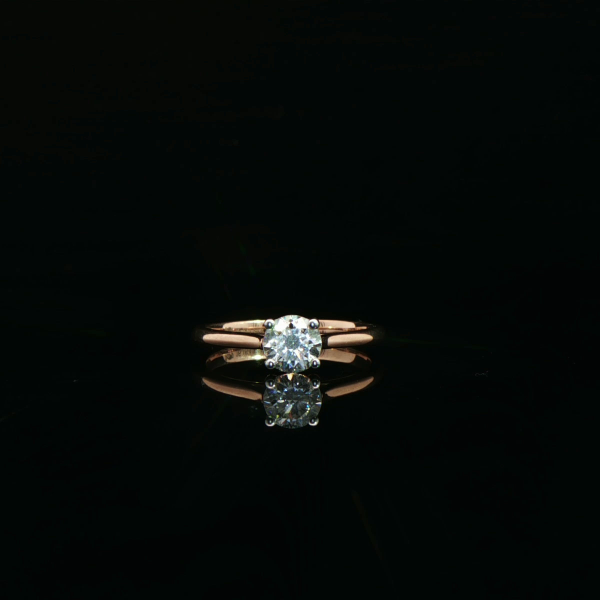 A timeless solitaire ring crafted in polished yellow gold, showcasing a brilliant round-cut diamond in a refined prong setting.
