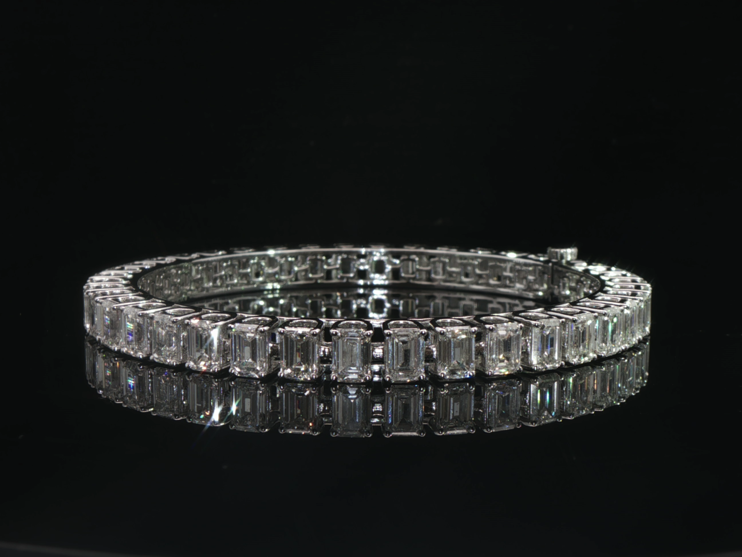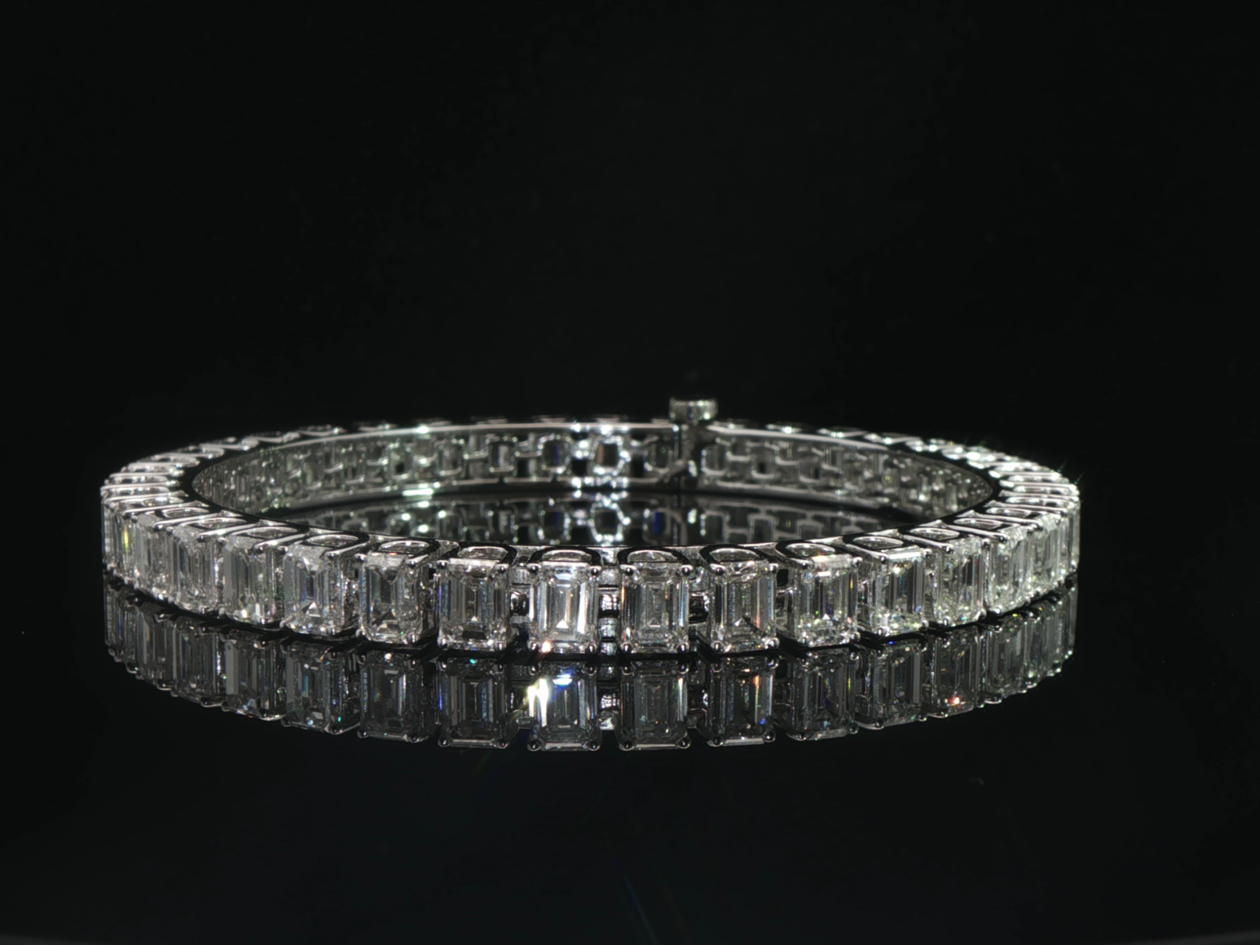 Elegant diamond bangle crafted with emerald-cut lab-grown diamonds. Sleek, structured, and designed for timeless everyday luxury.