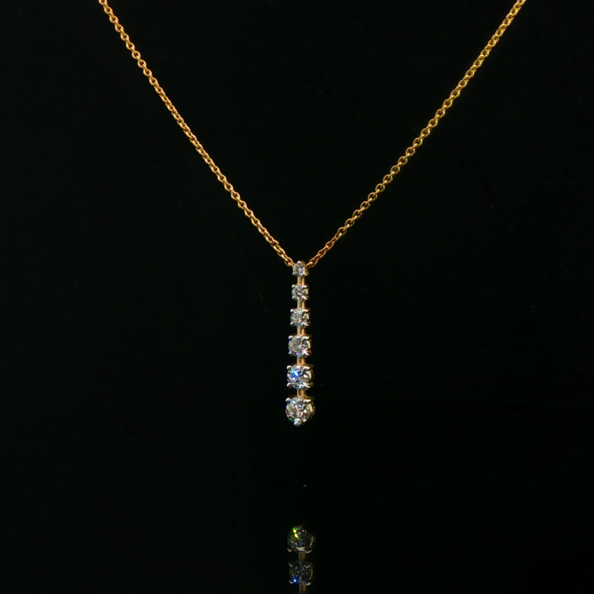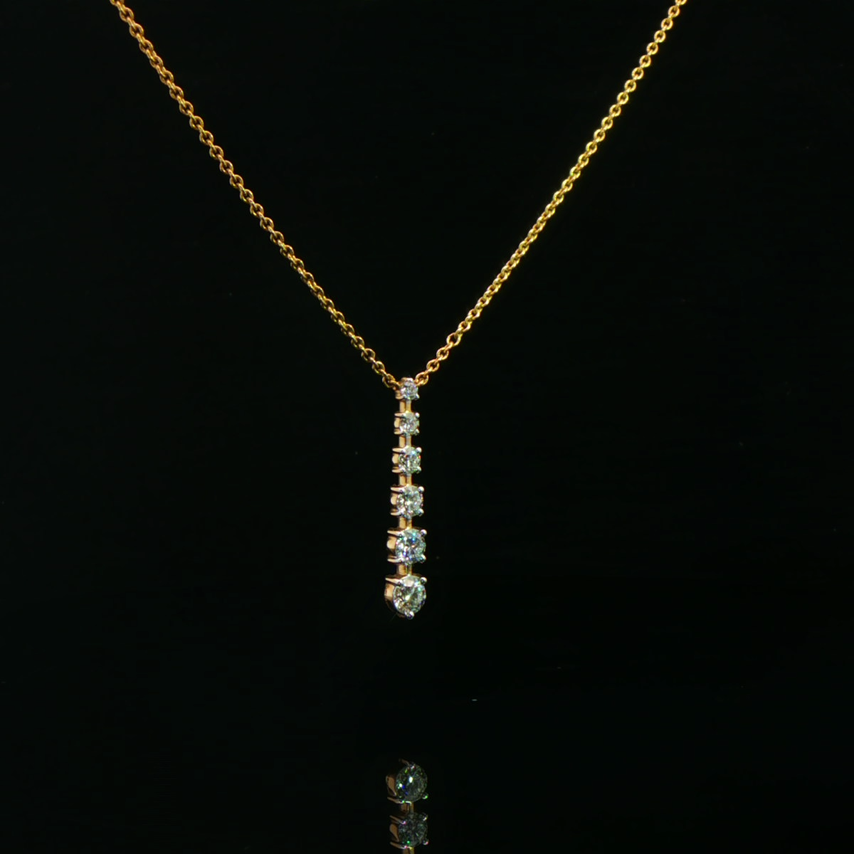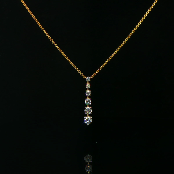 This diamond drop pendant necklace features a sleek vertical design accented with sparkling diamonds, offering modern elegance and everyday sophistication.