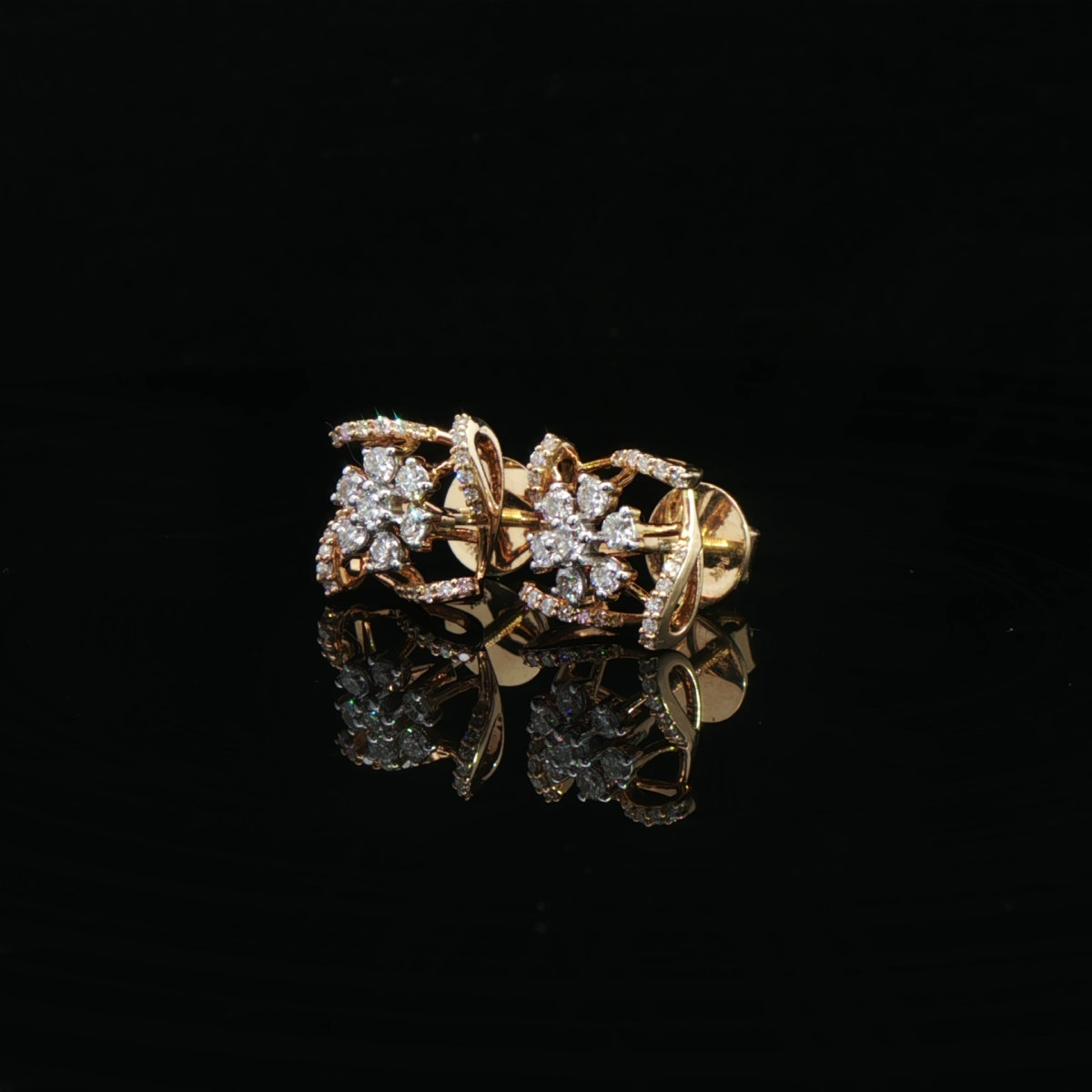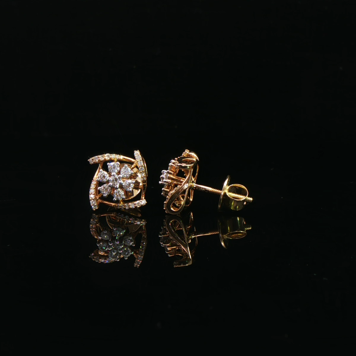 These pretty diamond earrings for women feature floral cluster centres framed by a soft cushion-shaped outer design in yellow gold with pavé accents.