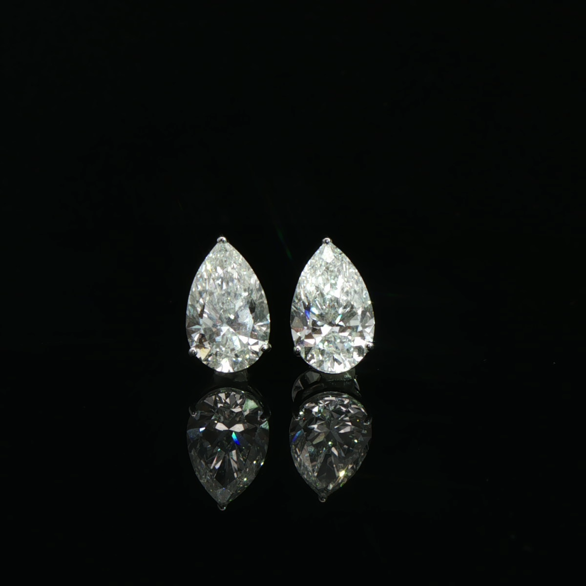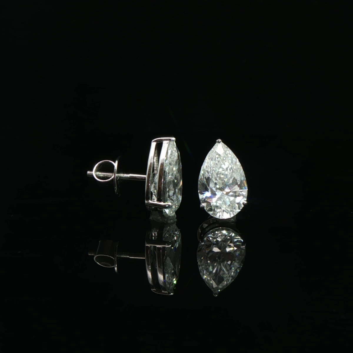 These chic diamond earrings for women feature elegant pear-shaped solitaire-style studs in a bright white gold look.