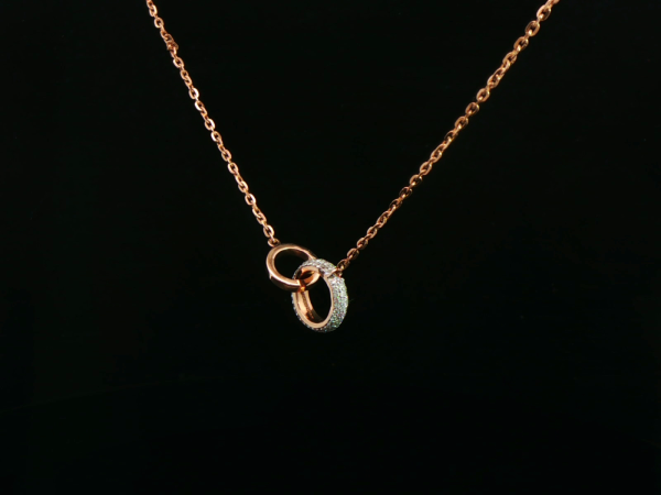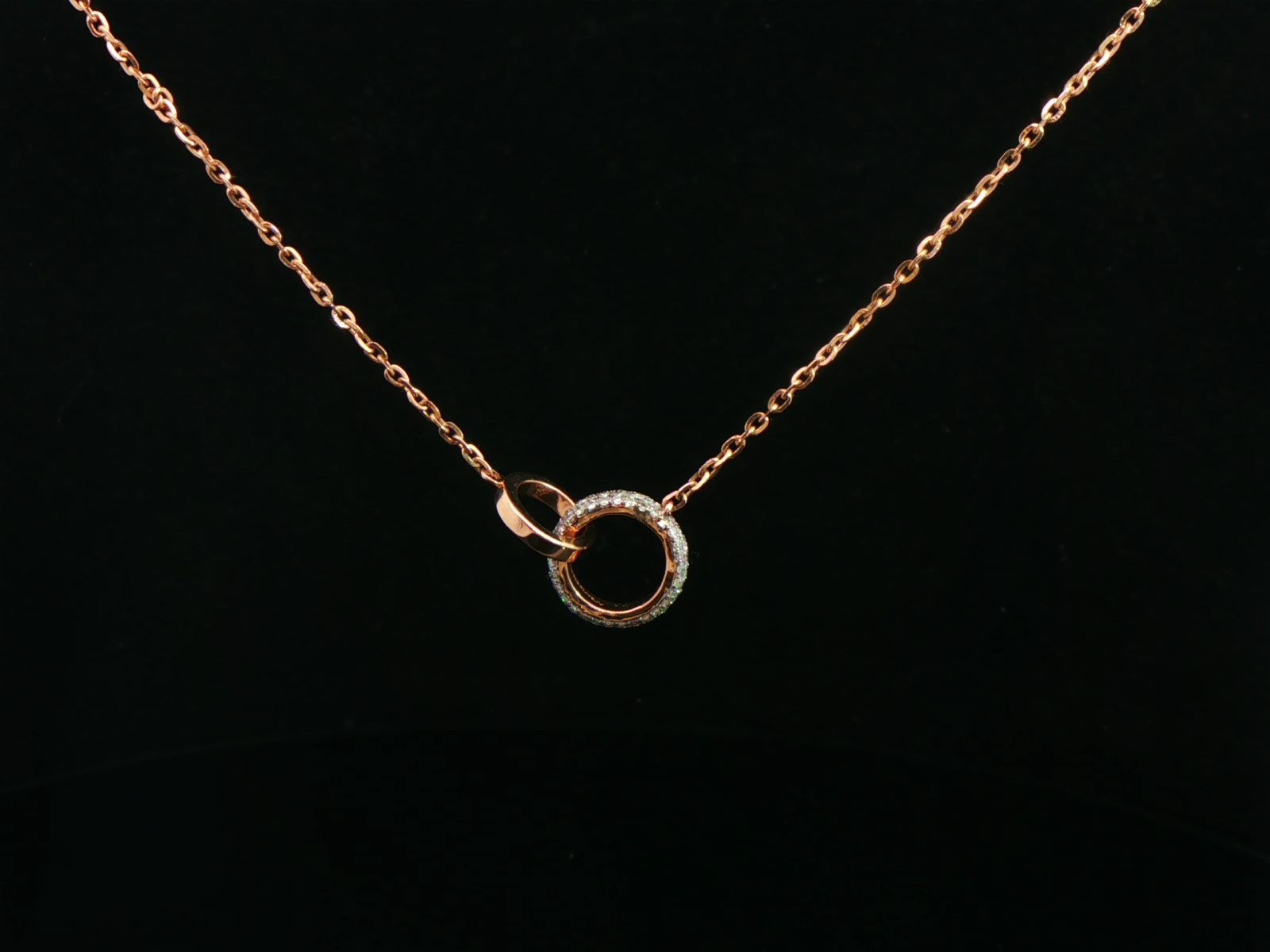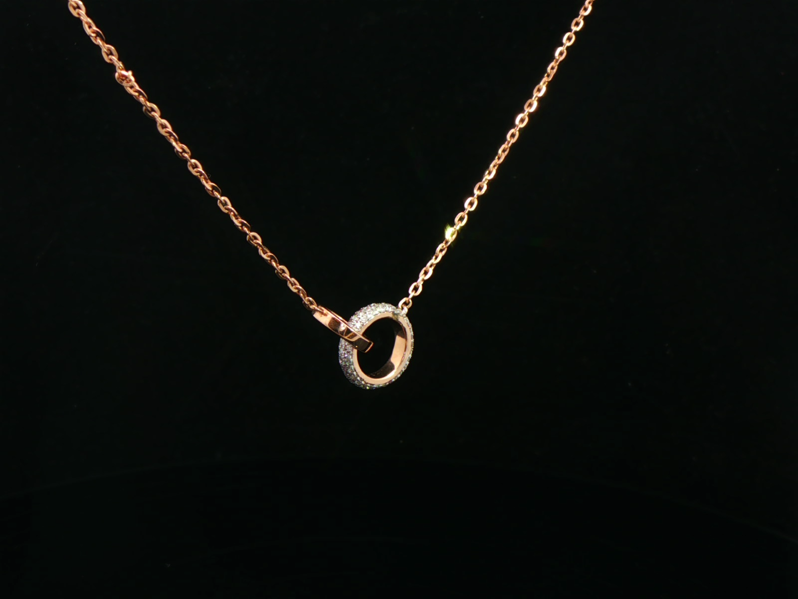 This delicate diamond necklace for women features a fine rose gold chain with a sleek open circle pendant accented by a single sparkling stone.