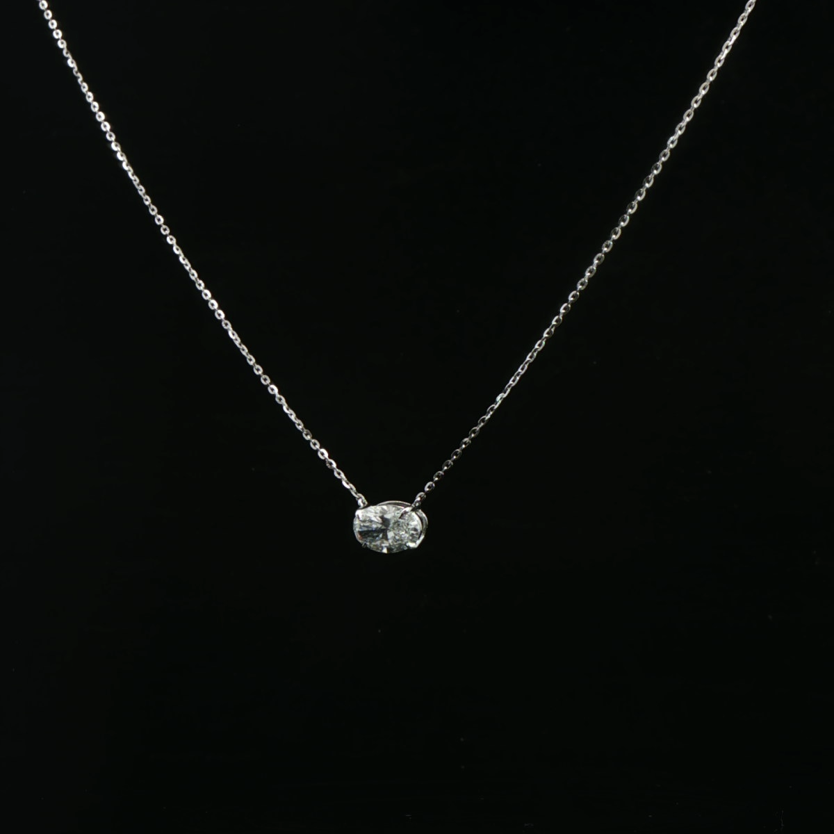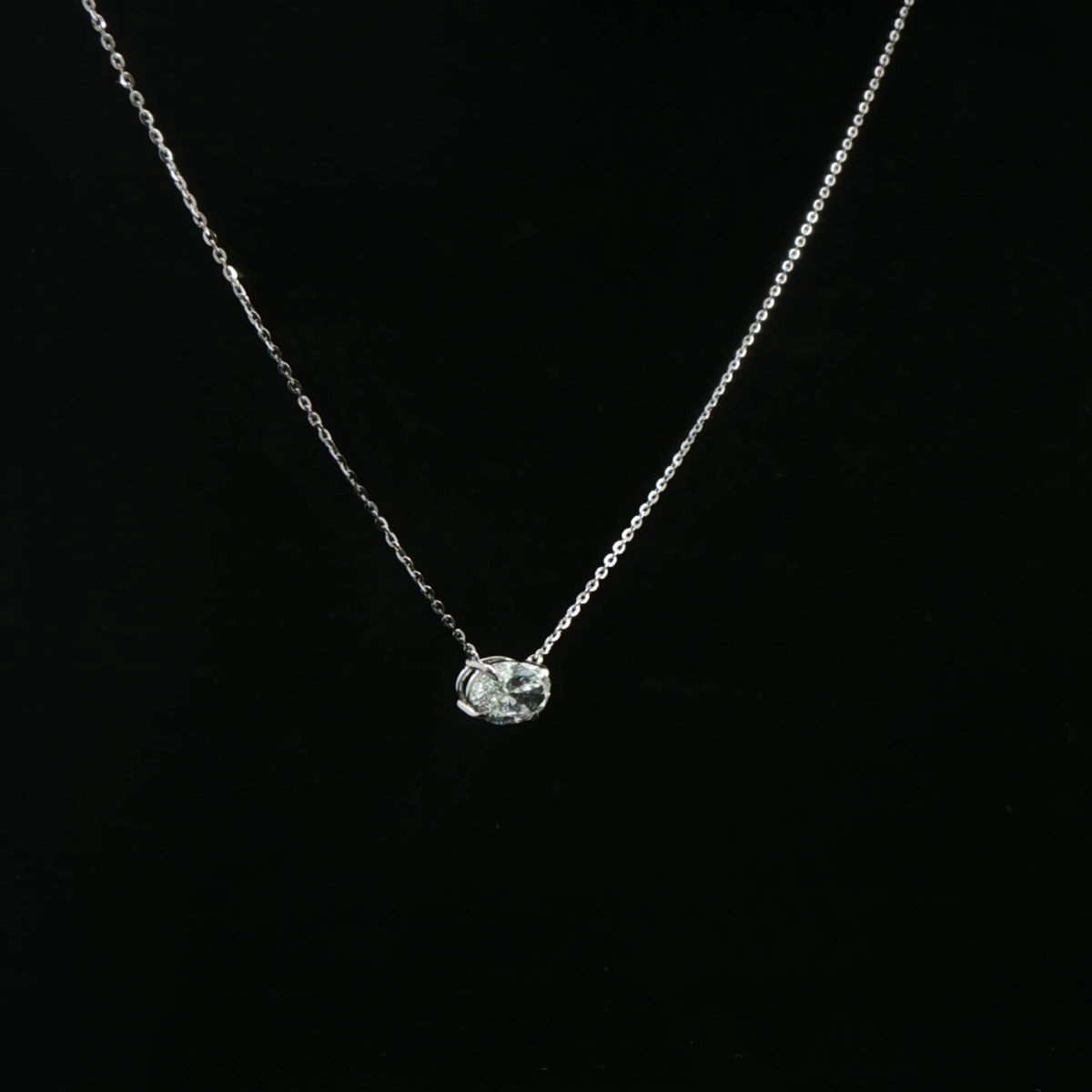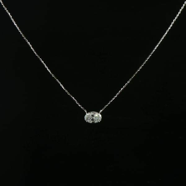 This chic diamond necklace for women features a slim chain with a petite oval diamond-style pendant for a clean, minimal everyday look.