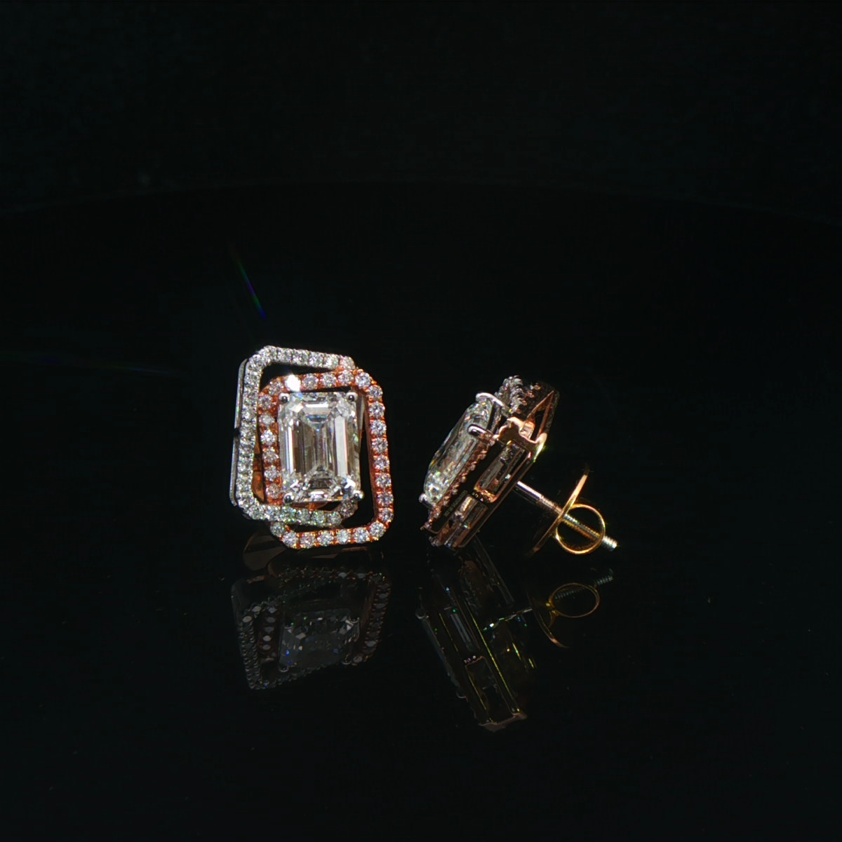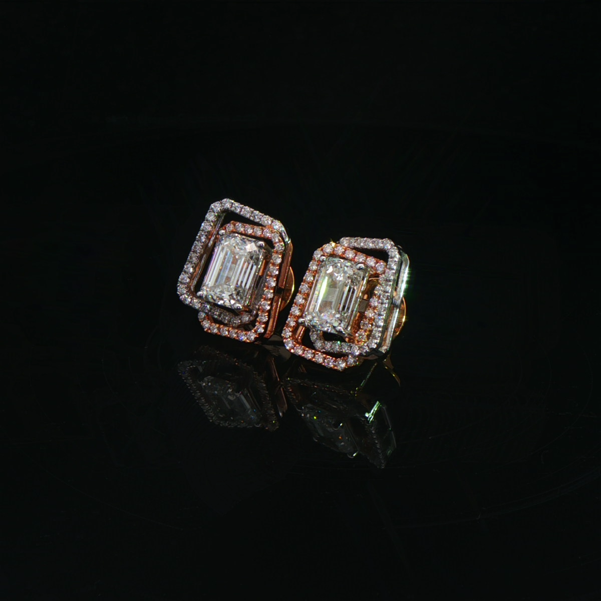 Elegant diamond stud earrings crafted in a geometric emerald-cut design with lab-grown diamonds. Modern, refined, and ideal for everyday elegance.