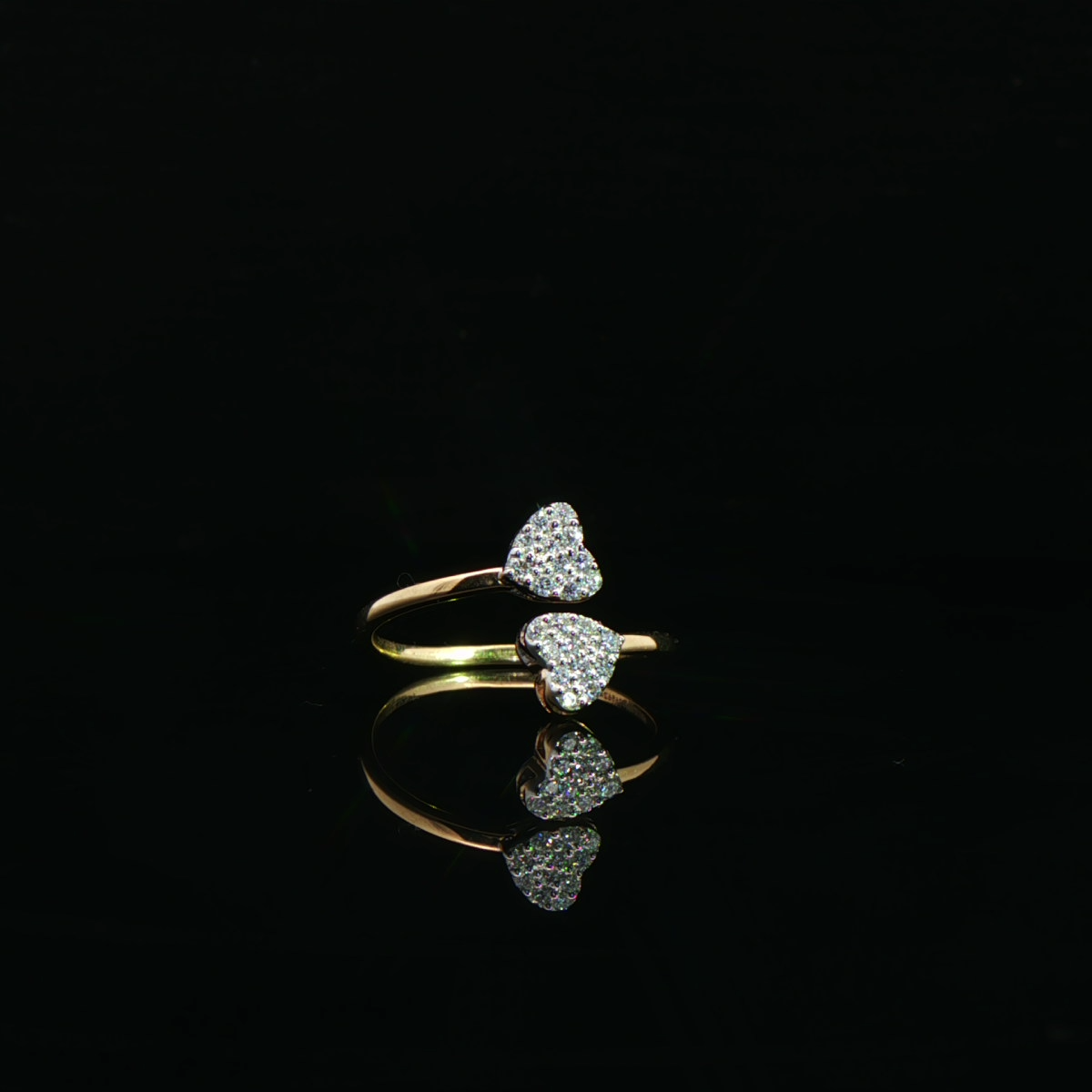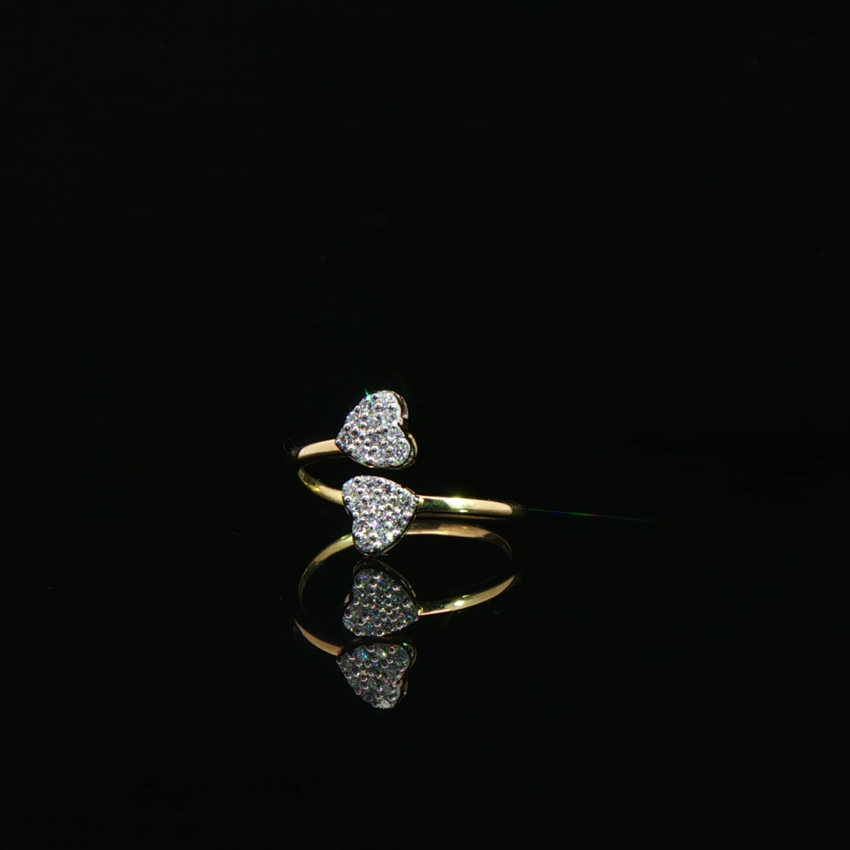 A refined expression of love, this dual heart diamond ring pairs graceful design with radiant brilliance. Crafted in polished yellow gold, it offers a delicate yet luxurious statement for everyday elegance.
