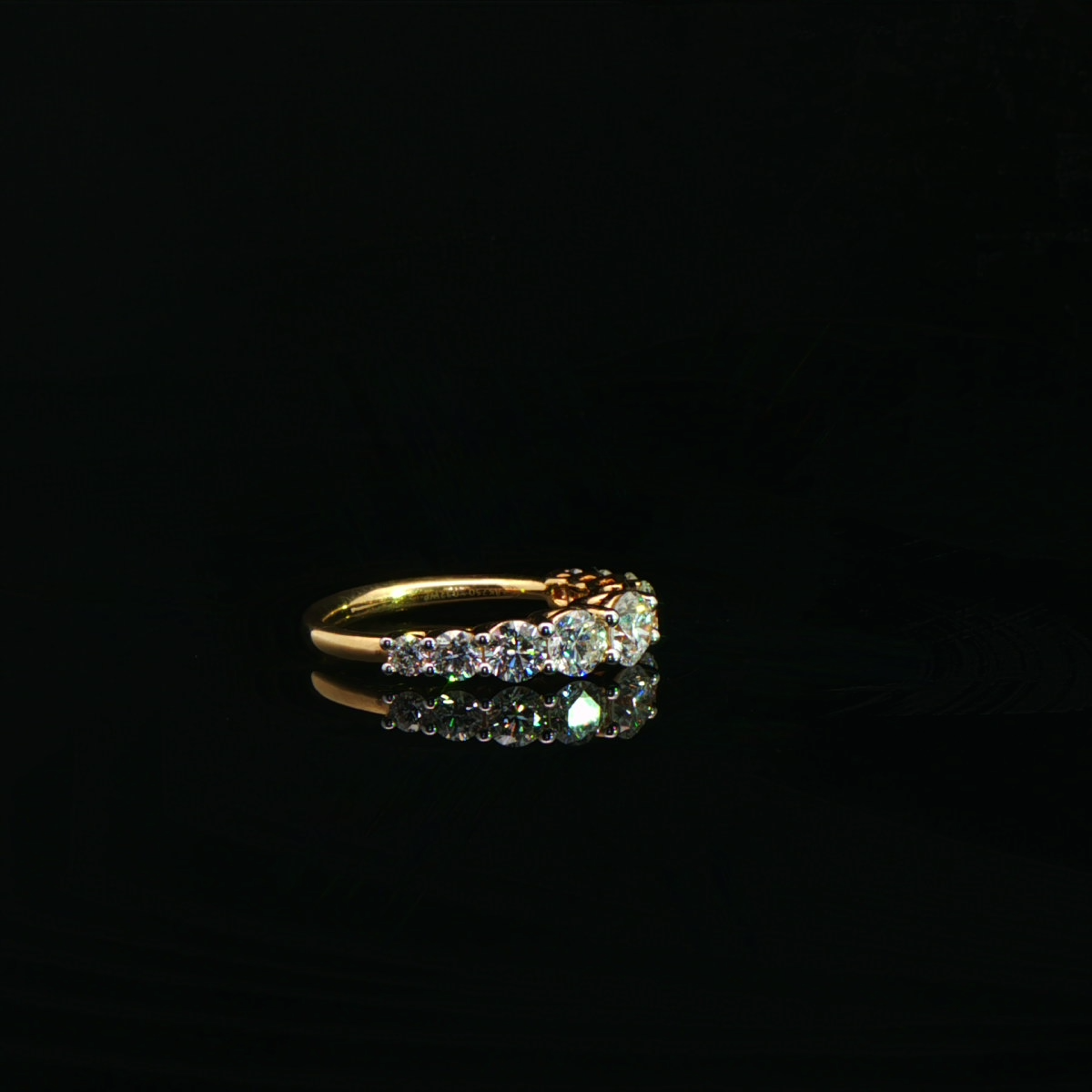 This sparkling diamond half eternity ring features a row of graduated round diamonds in a shared-prong setting on a slim gold band.