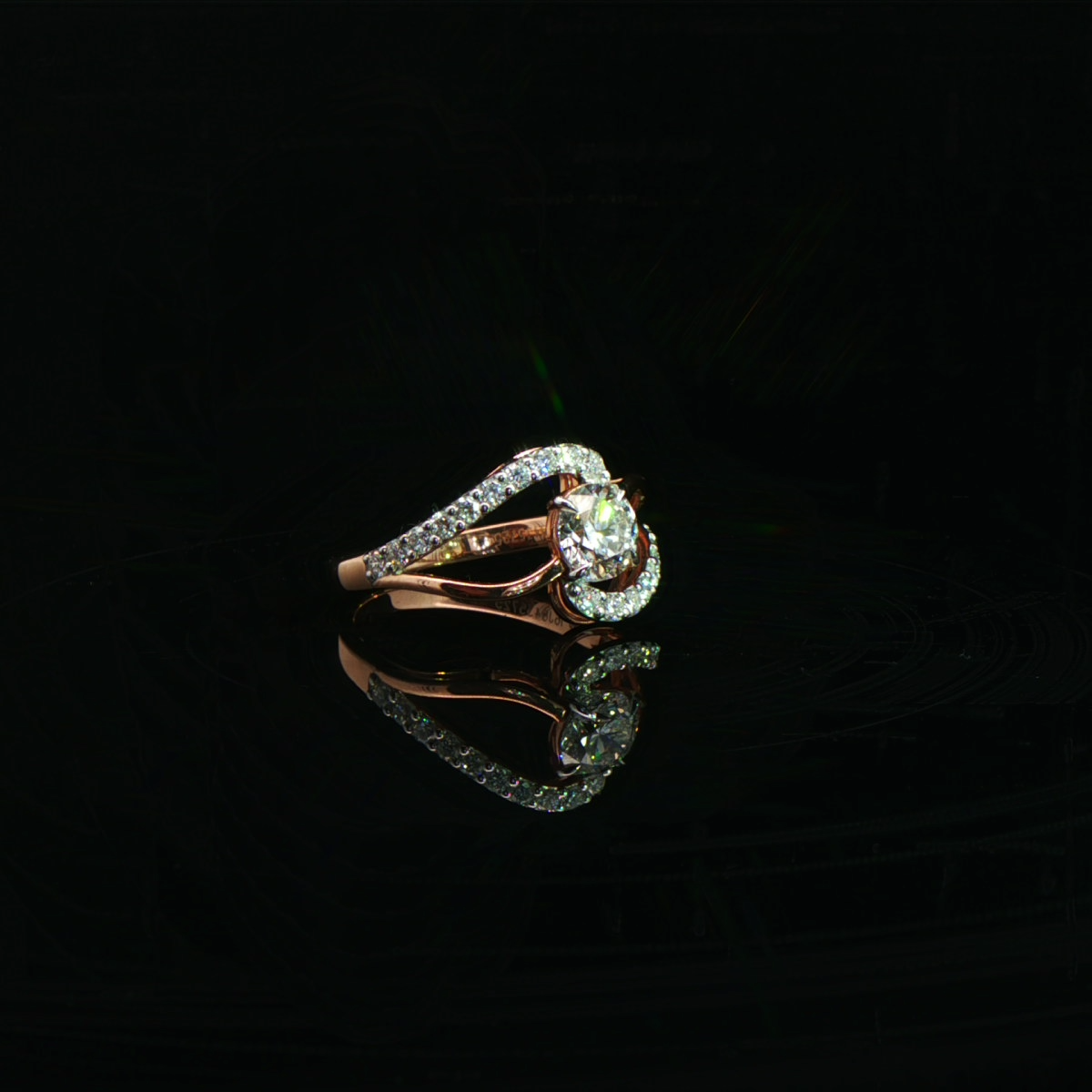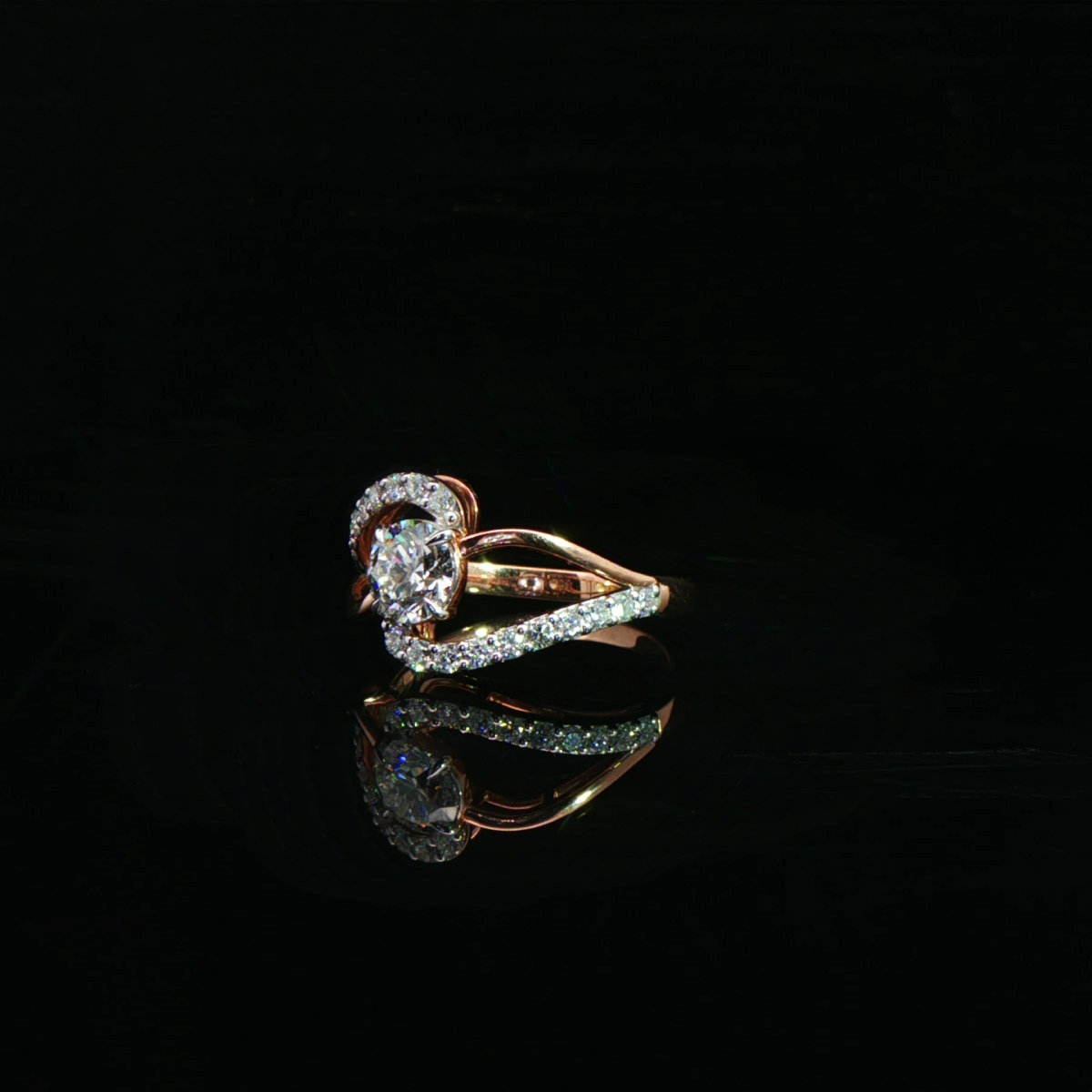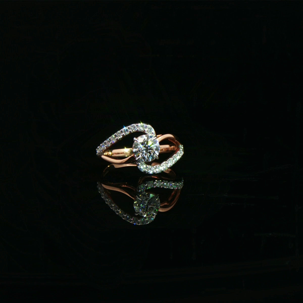 This gold ring features an intertwined design illuminated with brilliant diamonds, creating movement, depth, and refined radiance.