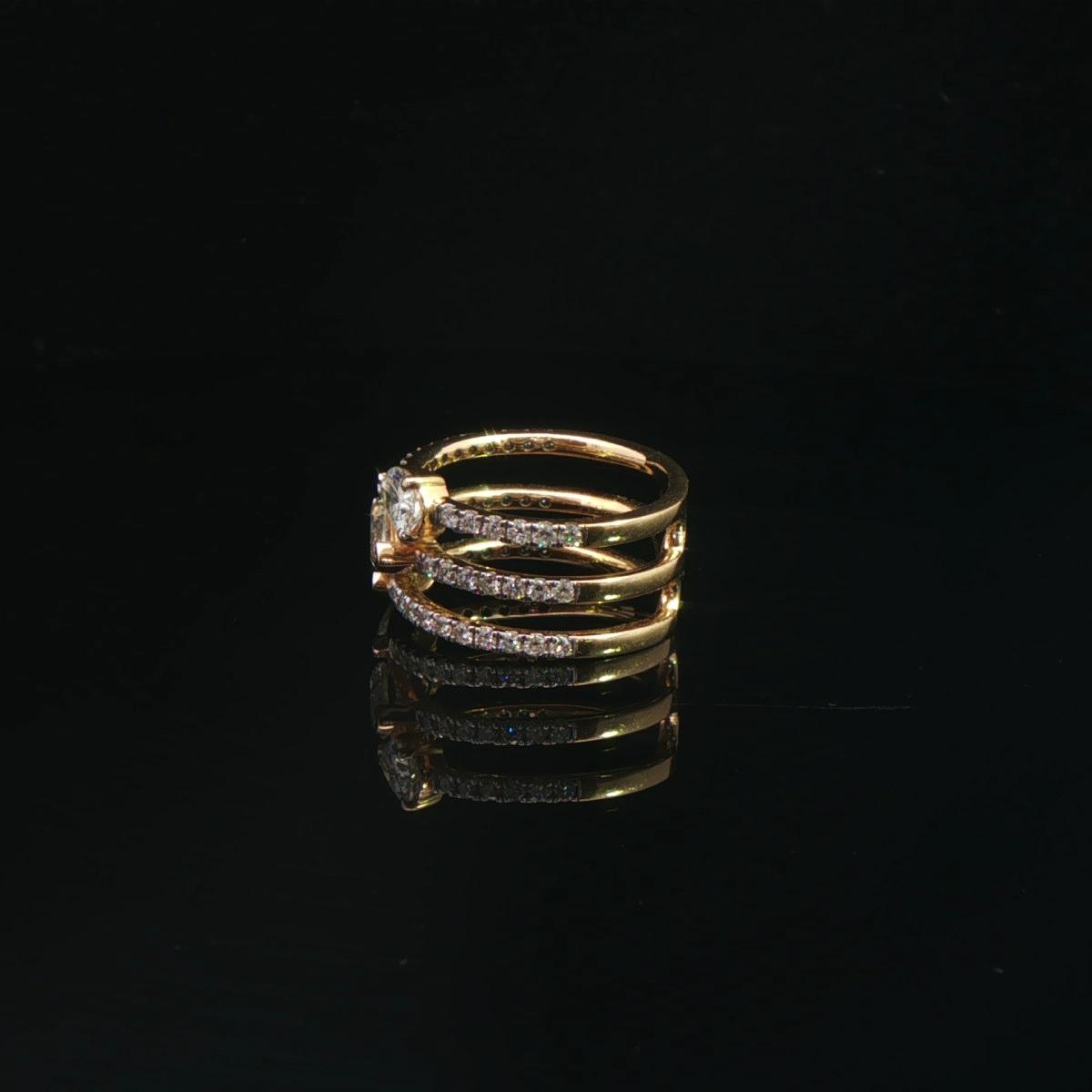 A bold multi-band ring highlighted by a radiant marquise-cut diamond.