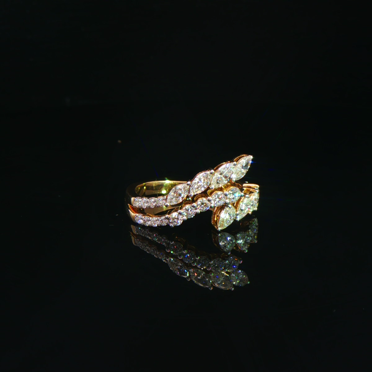 A graceful wrap ring adorned with shimmering marquise-cut diamonds.