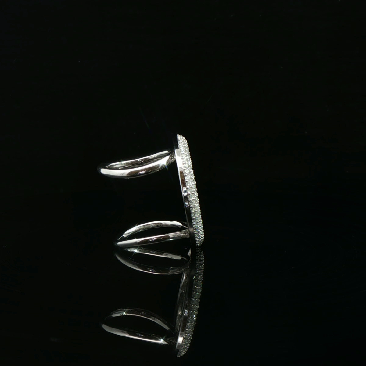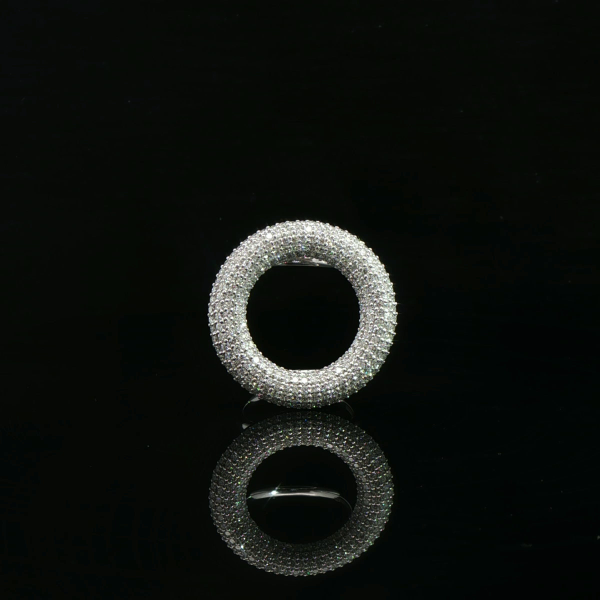 Contemporary circle ring with an open double band and pavé-set diamonds for maximum sparkle.