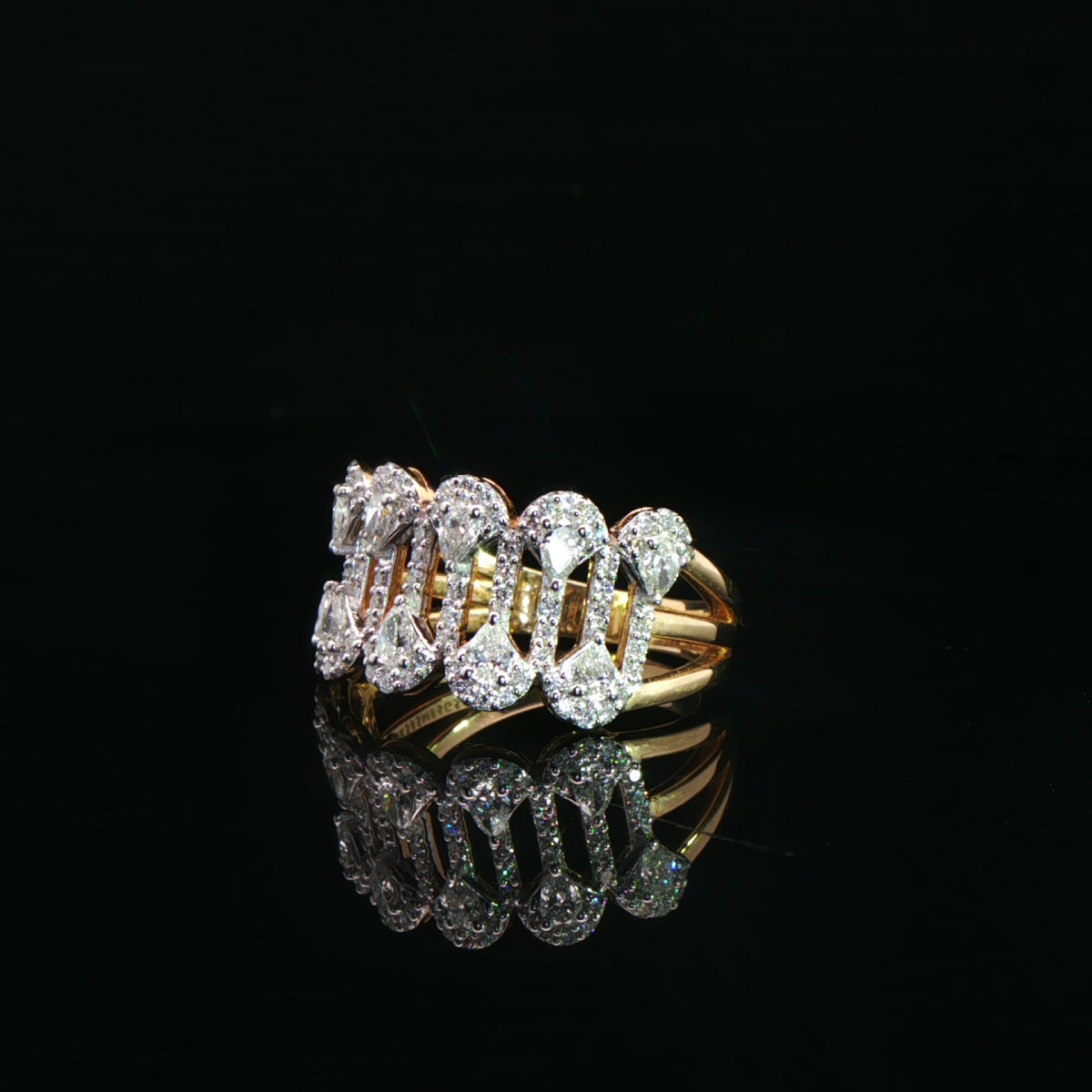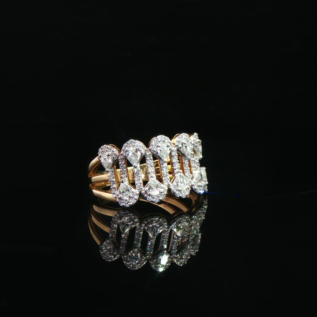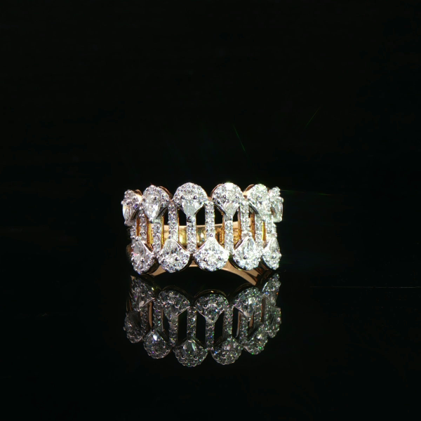 A bold expression of luxury, this exquisite diamond ring showcases a striking linked design, lavishly set with shimmering diamonds. Crafted in rich yellow gold, it radiates confidence, sophistication, and timeless elegance.