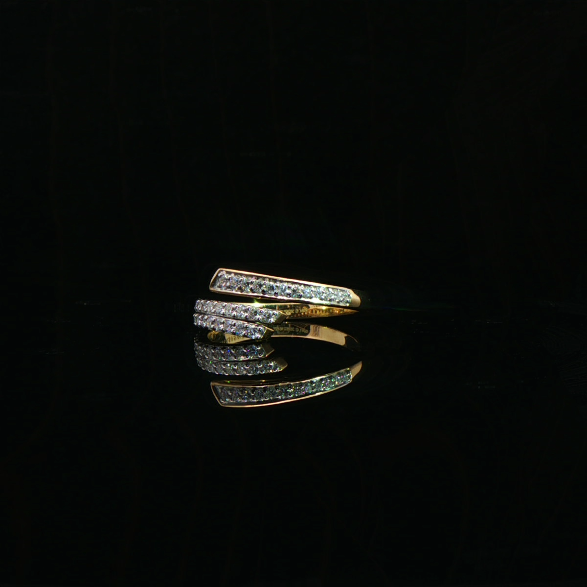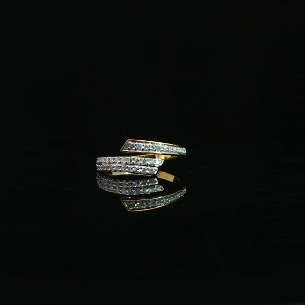 A contemporary expression of elegance, this wrap-style diamond ring features fluid lines of pavé-set diamonds that gracefully embrace the finger. Designed to shimmer from every angle, it blends modern artistry with timeless brilliance for a striking yet r