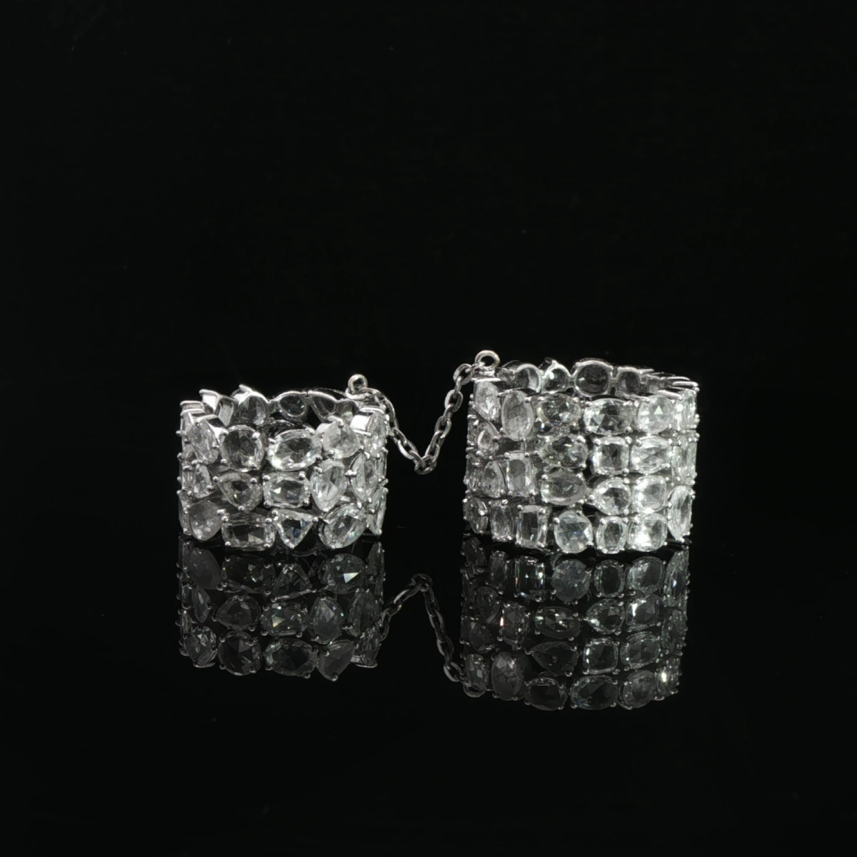 This bold diamond ring for women features a wide dome top encrusted with shimmering rose cut diamonds in an intricate lattice pattern, perfect as a cocktail ring for parties and weddings.