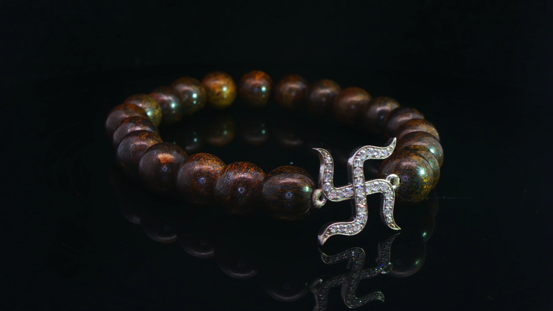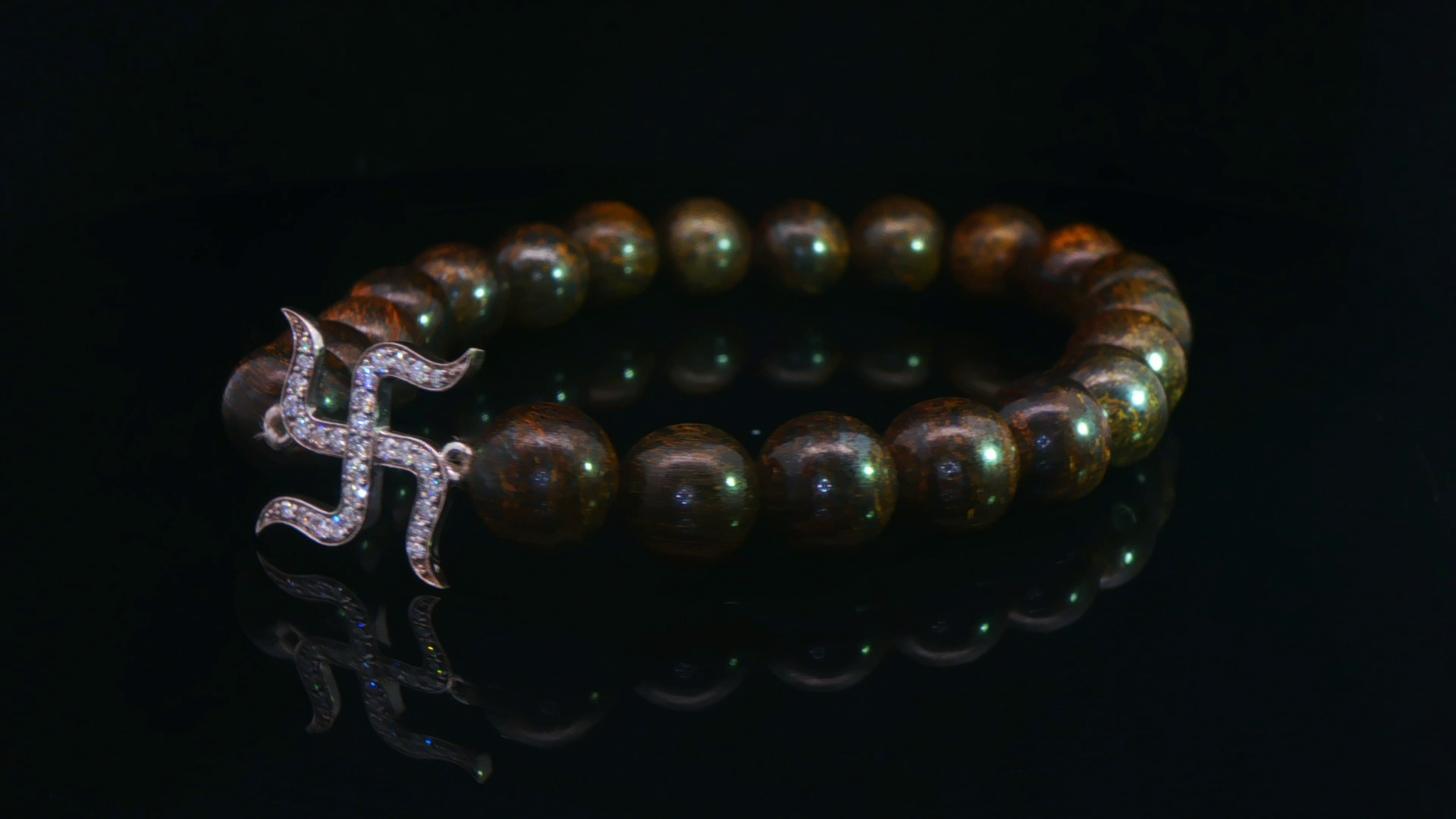 Elegant beaded bracelet crafted with natural stones and a lab-grown diamond Swastik motif in 925 sterling silver. A refined blend of spirituality, comfort, and everyday luxury.